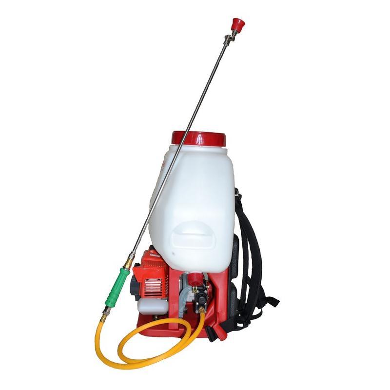 Le pulvérisateur 30 kg/cm² Kawasaki KAP 27 est fourni avec un tuyau Ø 7,5 mm, un robinet sphérique, une buse et des lunettes de protection. Démarrage lanceur. Allumage électronique. Embrayage automatique centrifuge. Réservoir de produits 20 litres. Sac à dos grand confort. Buse orientable. Molette de réglage débit. Marquage CE.