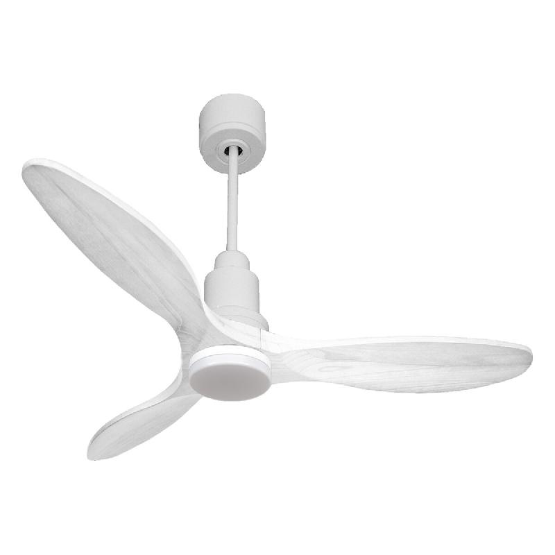 Les pales aérodynamiques en balsa massif rendent le ventilateur très léger. Elles ont été fabriquées à la main pour être équilibrées et ne pas produire de vibrations. Ce modèle à 3 pales en bois blanc a un diamètre de 132 cm.