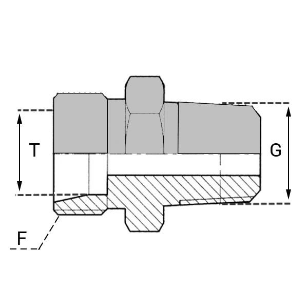 Caractéristiques : - DESIGNATION : UMCO 06S/1/4 NE - Tube / Pipe / T (mmm) : 6.0 - Filetage F : 14X150 - G (inch) : 1/4' - G (mm) : 13.15 -