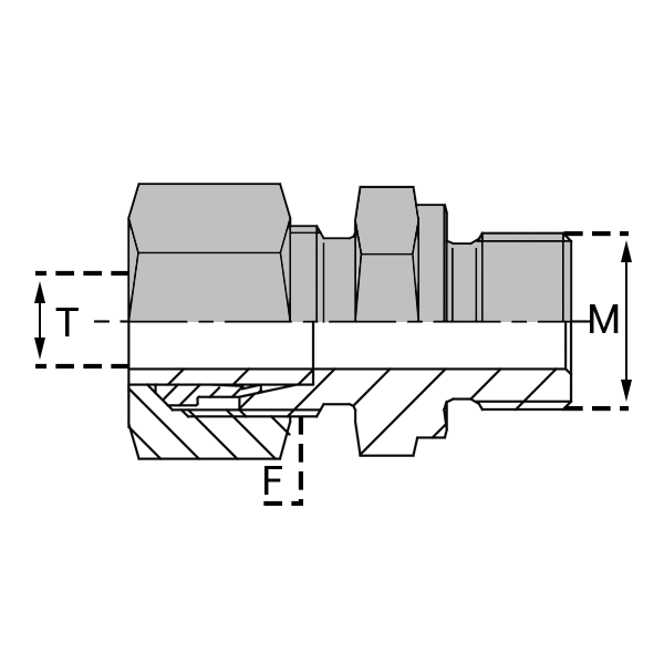 Caractéristiques : - DESIGNATION : UMTCO 06S/12X150 NE - Tube / Pipe / T (mm) : 6.0 - Filetage F : 14X150 - M (mm) : 12X150 -