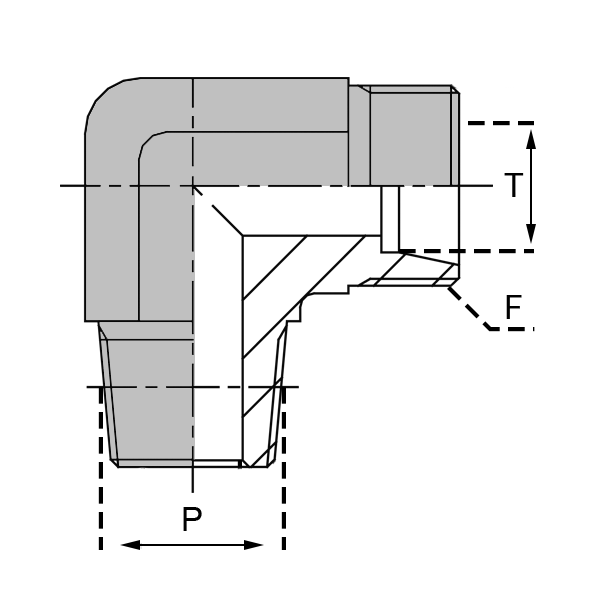 Caractéristiques : - DESIGNATION : UMNPT 04LL/1/8 EQ - Tube / Pipe / T (mmm) : 4.0 - Filetage F : 08x100 - P (inch) : 1/8" - P (mm) : 10.24