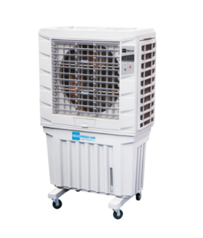 Ventilateur de refroidissement industriel avec débit de 40000 m³/h. Capacité de refroidissement jusqu'à 10 °C. Convient pour une superficie de 280 à 350 m².Cet appareil volumineux a une longueur de 1960, une profondeur de 760 avec une hauteur de 2050 mm.Ce rafraîchisseur d'air évaporatif mo