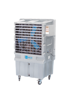 Ventilateur de refroidissement industriel avec débit de 40000 m³/h. Capacité de refroidissement jusqu'à 10 °C. Convient pour une superficie de 280 à 350 m².Cet appareil volumineux a une longueur de 1960, une profondeur de 760 avec une hauteur de 2050 mm.Ce rafraîchisseur d'air évaporatif mo