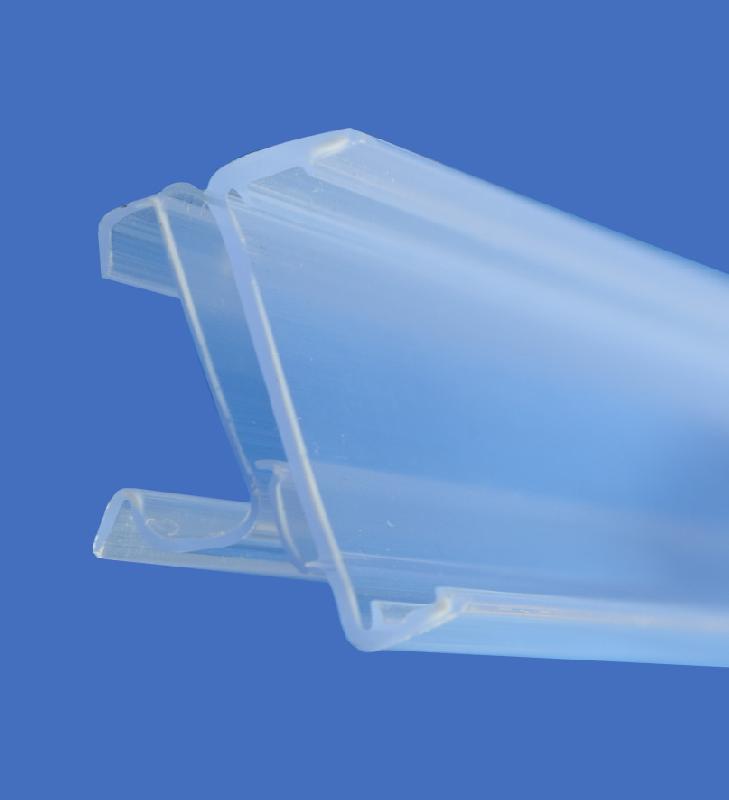 Porte étiquette pour tablette verre 8 à 10 mm - hauteur 26 mm - longueur 800 mm - façade galbée - Porte étiquette pour tablette verre 8 à 10 mm - Hauteur 26 mm - longueur 800 mm - Façade galbée - Avec rail T intégré pour séparateur - Couleur: - Façade et pince transparente - F