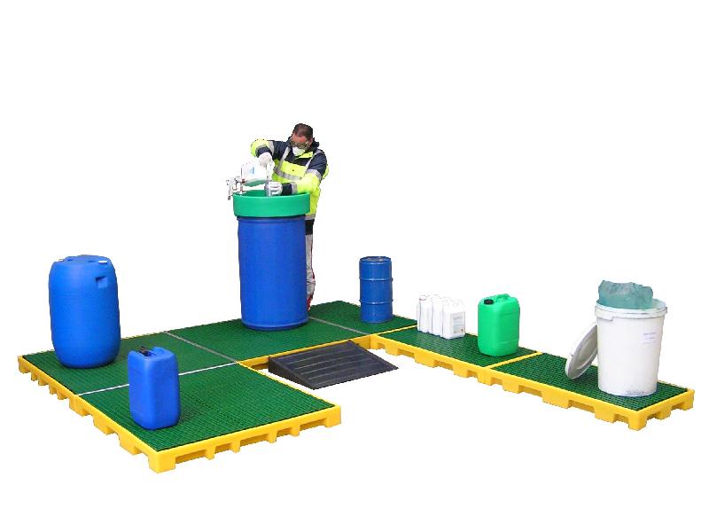Plateforme de rétention plastique 80 litres - PFRP80/150 - Cette plateforme est parfaite pour la collecte des eaux de lavage et/ou les fuites de produits liquides. En les assemblant les unes aux autres, il est possible de créer un plancher de travail de grande taille. - Conçue avec une faible