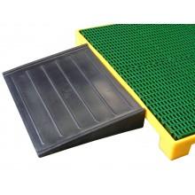 Caractéristiques - Longueur : 1200 mm - Largeur : 800 mm - Hauteur : 150 mm - Rampe d'accès finition polyéthylène pour plateforme de rétention - Hauteur : 150 mm - Convient aux réf. PLPE1610X1270X150 / PLPE1270X825X150 / PLPE1220X660X150 - Réalisé à 100 % en polyéthylène haute dens