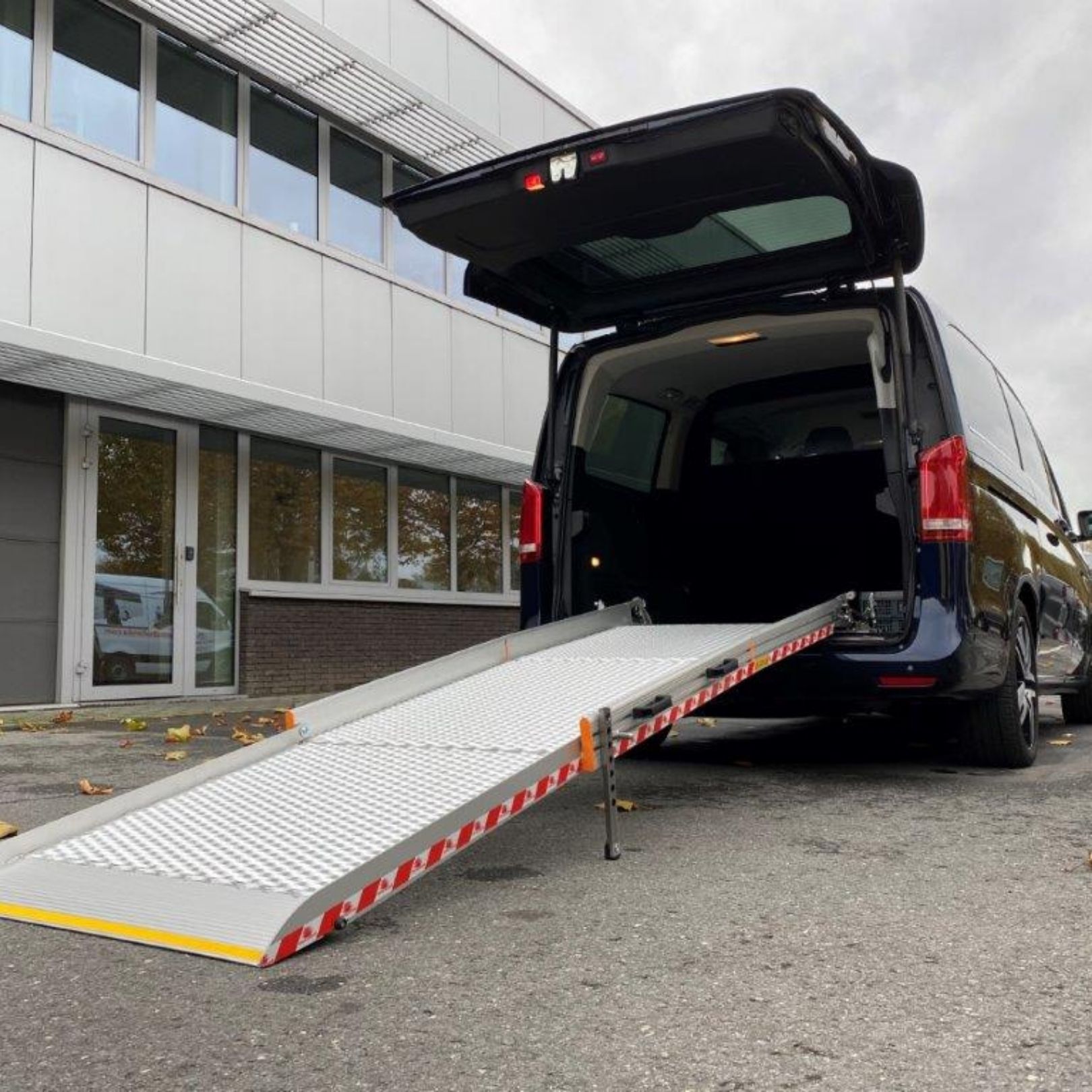 Rampe d'accès PMR très large (800 mm). Construction en aluminium inaltérable ne nécessitant aucun entretien. Idéale pour le franchissement de marches par des fauteuils roulants.Rampe idéale pour une installation provisoirement ou définitivement. Dispose d'un rebord latéral de sécurité (100