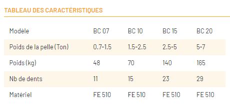 Description : - Structure Hardox. - Plusieurs tailles et configurations disponibles. - Pointes oxycoupées ou option possible pour mintage porte - dents/dents.