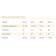 4 modèles de 665 à 1980 mm de largeur, pour pelle et mini-pelle de 0,7 à 7 tonnes. Différent d'un multi-ripper de par un espace plus petit entre les dents.