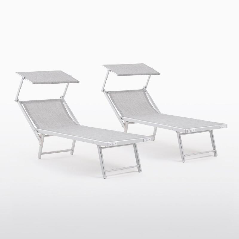 RATTATAN 2 Chaises longues avec toit, dossier réglable, en aluminium et textilène, design moderne, robuste, ergonomique, léger et pliable – Marin