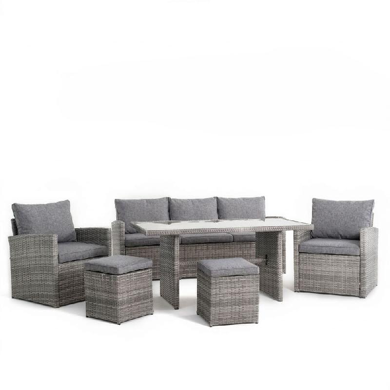 RATTATAN Ensemble de détente de jardin en polyrattan avec canapé, fauteuils, poufs et table en verre, élégant et confortable, pour jardin, terrass