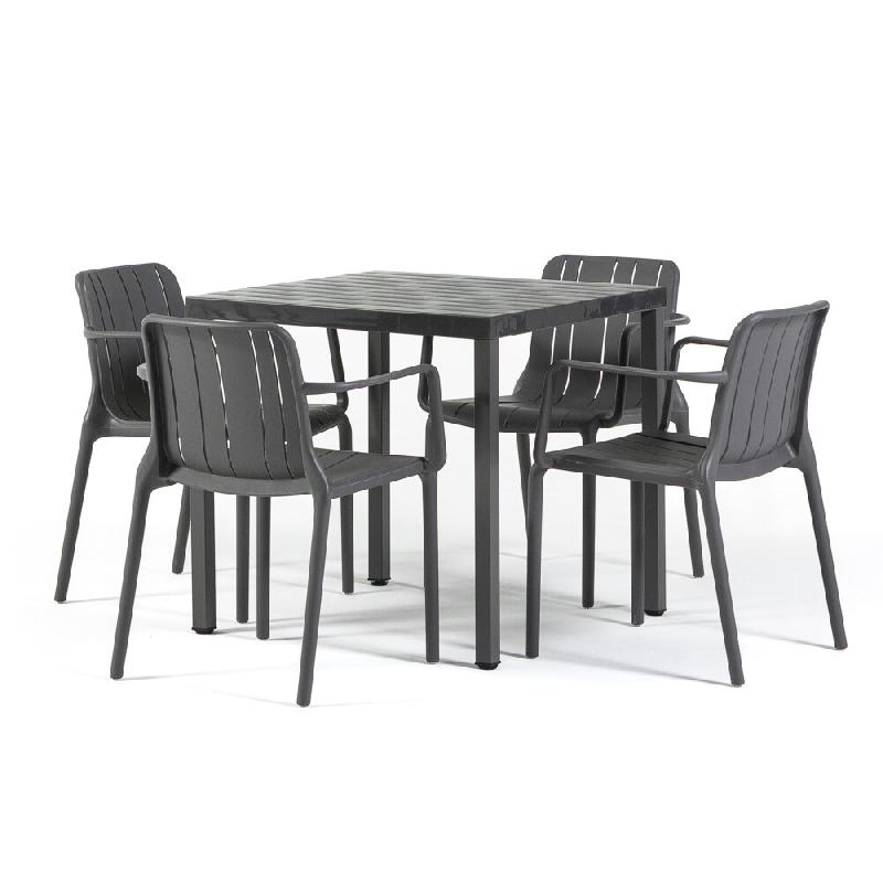 RATTATAN Ensemble de salle à manger extérieur Table carrée 80x80 cm et 4 chaises avec accoudoirs, résistant, pour terrasses, jardins - Zeno + Ginn