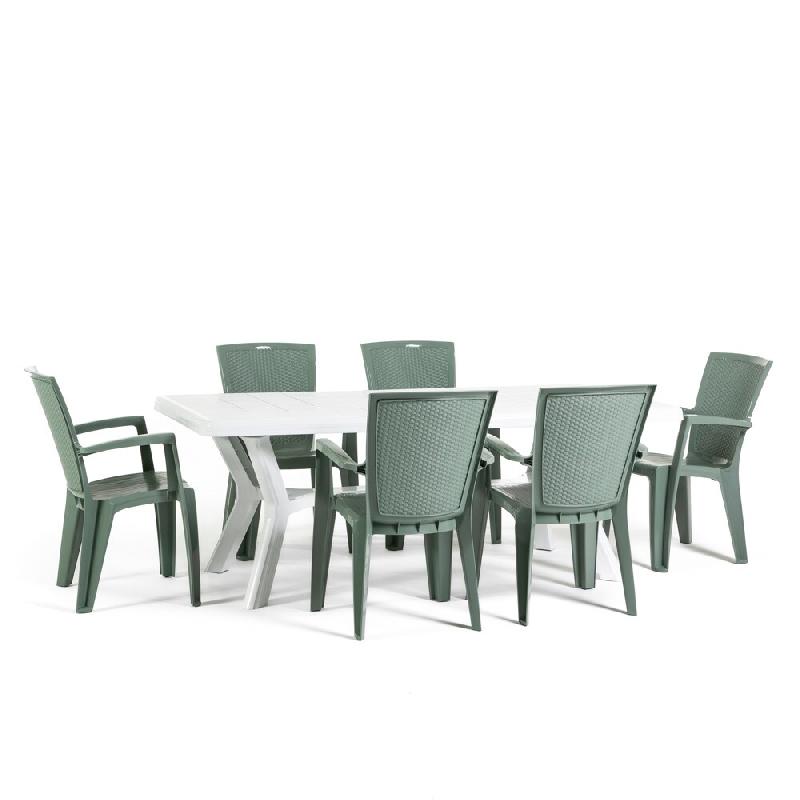 RATTATAN Ensemble repas de jardin composé de la table rectangulaire en résine Samuel, 6 chaises en résine monobloc empilables effet rotin Diana - S