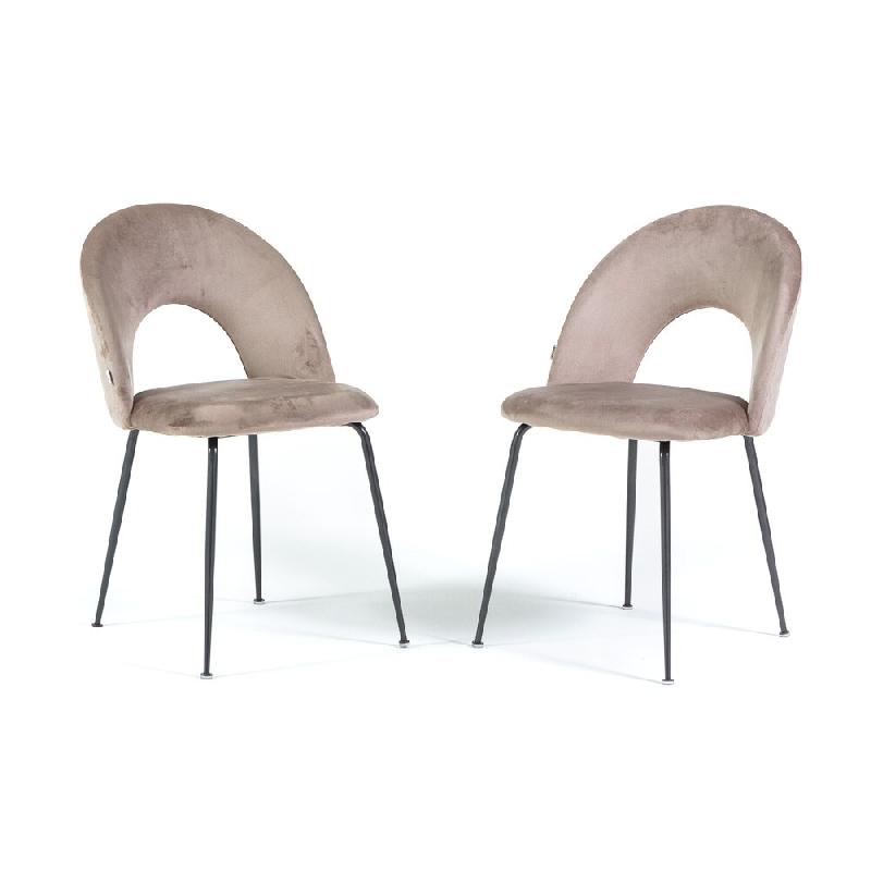 Chaises d'intérieur CLARISSA en velours avec pieds en métal. - Le tissu doux et élégant offre une sensation de confort et de luxe, tandis que les pieds en métal assurent stabilité et solidité. - La combinaison de matériaux et de textures différentes crée un look audacieux et séduisant,