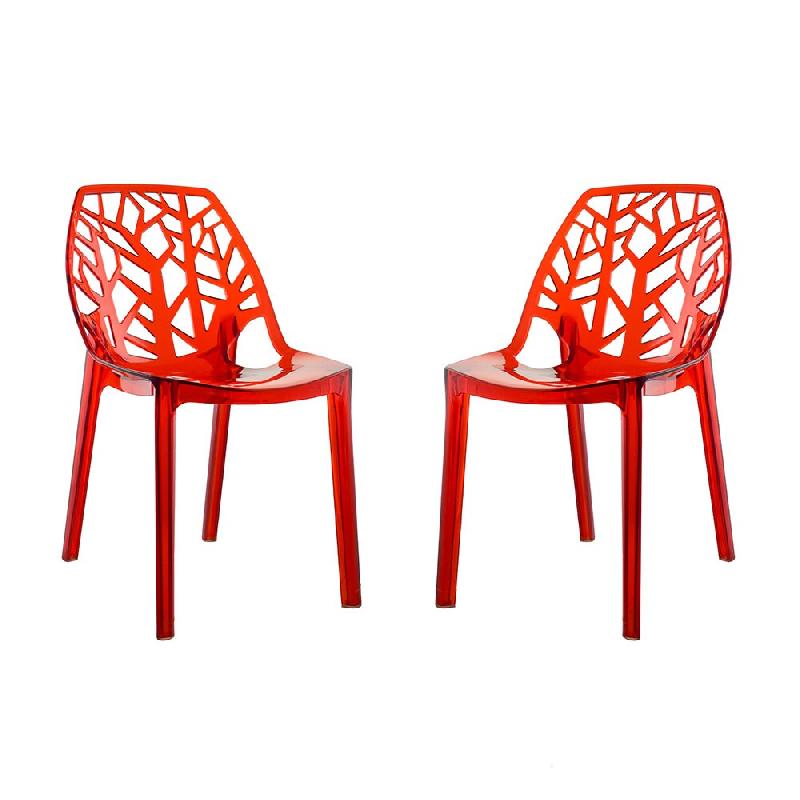 Chaise design - Empilable, tendance - corps en plastique plexiglas rouge transparent - piétement acier chromé - profondeur - largeur 42 cm - Hauteur du dossier 90 cm - Hauteur de l'assise 45 cm