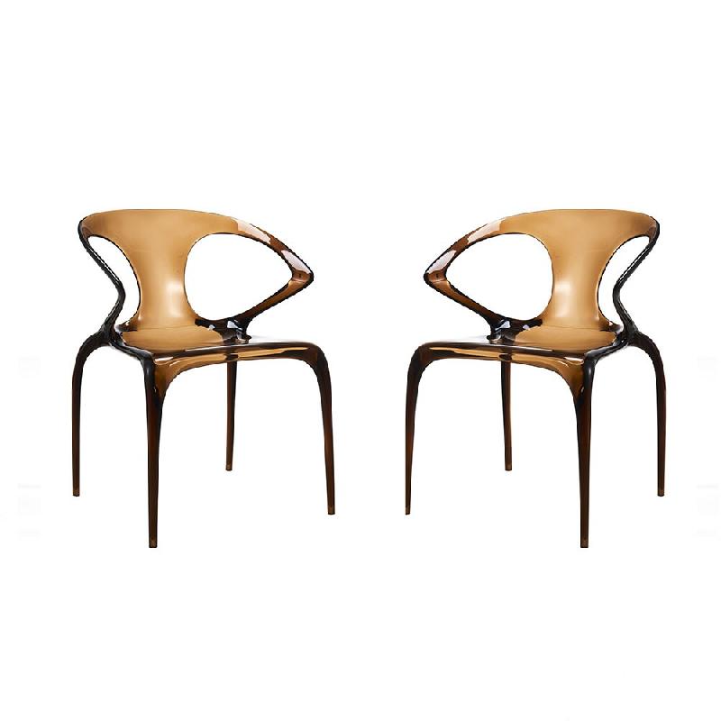 Les chaises Astra sont une véritable icône du design contemporain, réalisées entièrement en polycarbonate transparent pour un effet visuel élégant et scénographique. - Leurs lignes fluides et futuristes créent un jeu de pleins et de vides qui attire le regard et apporte une grande légère
