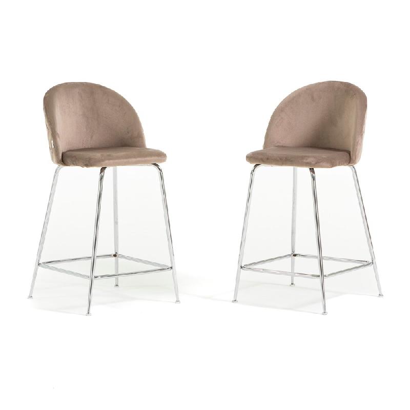 RATTATAN Lot de 2 tabourets de bar en velours avec pieds en métal,h.65cm,pour bar,restaurant et cuisine,design élégant–Sara XL–Taupe/Argent - m