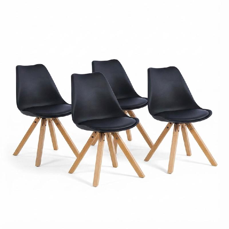 RATTATAN Lot de 4 chaises en polypropylène avec pieds en bois, coussin rembourré, style minimal, pour cuisine, salle à manger, bar, restaurants - S