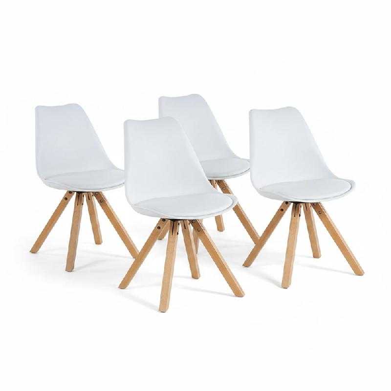 RATTATAN Lot de 4 chaises en polypropylène avec pieds en bois, coussin rembourré, style minimal, pour cuisine, salle à manger, bar, restaurants - S