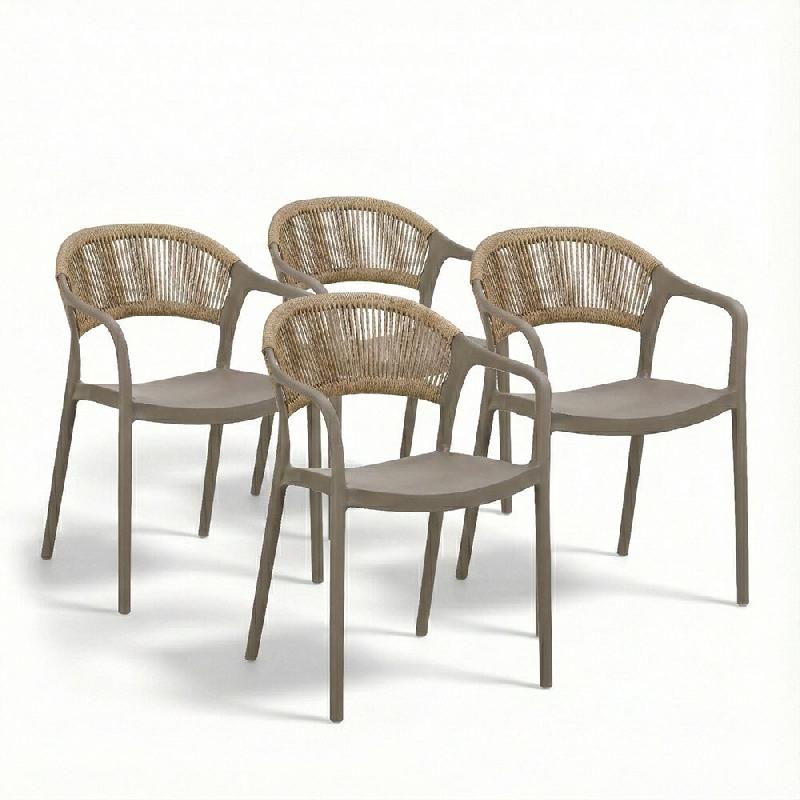 RATTATAN Lot de 4 chaises en polypropylène avec tissage en corde, élégantes, résistantes, empilables, pour jardin, balcon, bar, restaurants-JOLAND