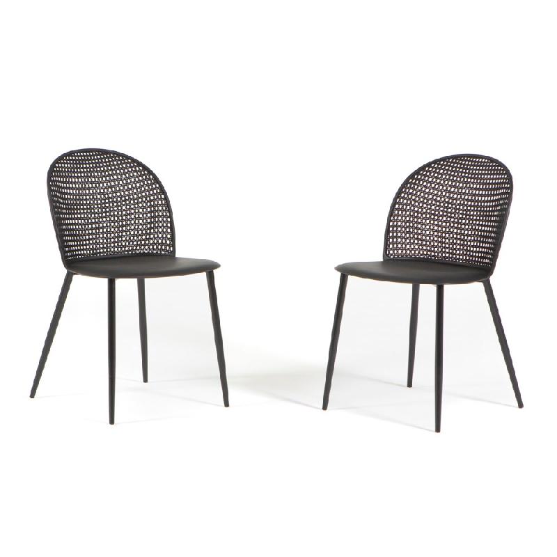 RATTATAN Set de 2 chaises en polypropylène avec pieds en métal, design moderne, dossier tressé pour cuisine, jardins couverts, bars et restaurants