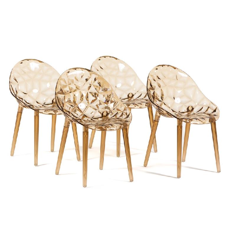 RATTATAN Set de 4 chaises en polycarbonate transparent, résistantes, ergonomiques, pour bar, restaurant, cuisine, jardin, design moderne - Diamante -