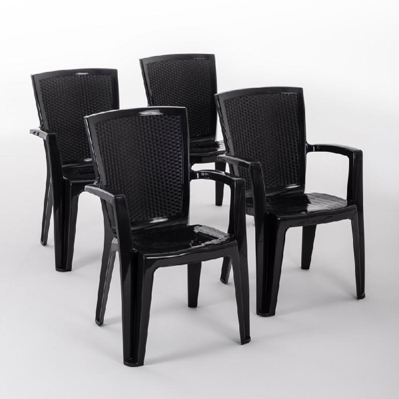 La chaise avec accoudoirs Simona est un siège au design original et moderne inspiré du rotin, parfait pour aménager jardins, terrasses, balcons ou espaces extérieurs. - Fabriquée en polypropylène renforcé de fibre de verre, elle est très robuste et résistante aux intempéries, tout en éta