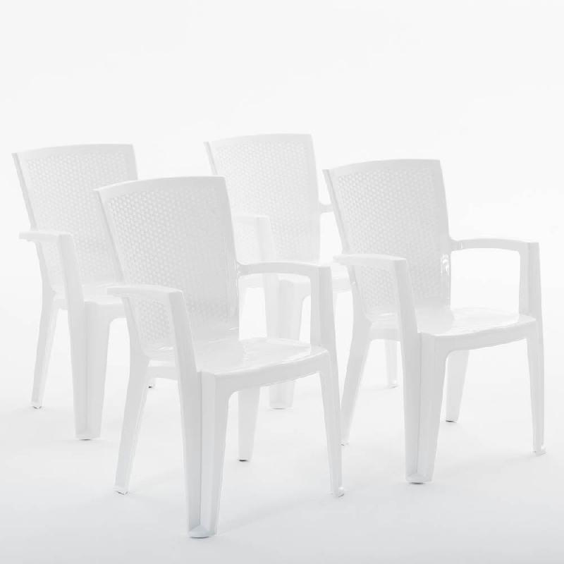 RATTATAN Set de 4 chaises monobloc en polypropylène avec fibre de verre, effet rotin, empilables pour extérieur et jardin, bar et restaurant - Diana