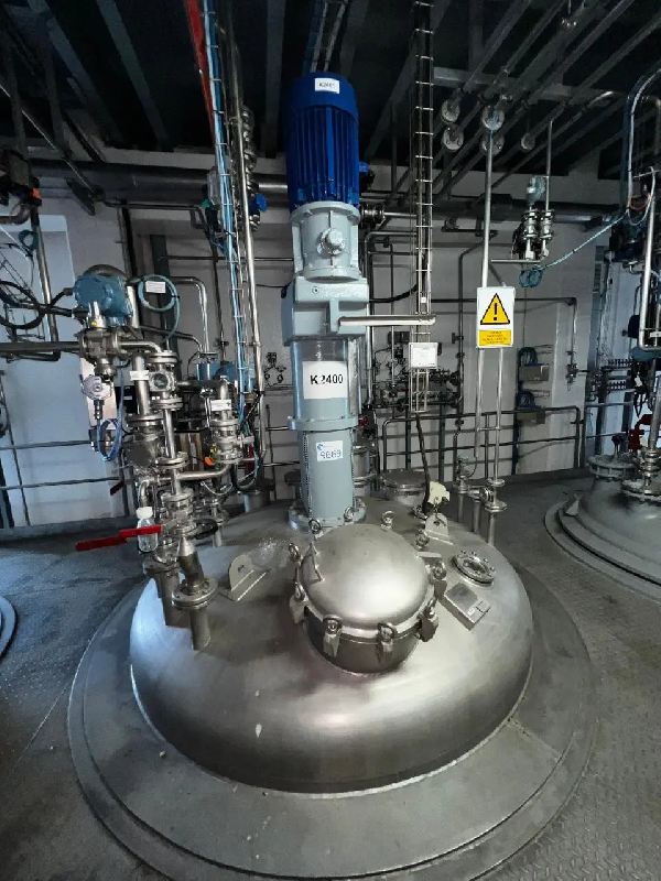 Réacteur vertical en acier inoxydable 316 d'une capacité totale de 5 000 litres (4 000 utiles). L'équipement dispose d'un agitateur, d'une demi - barre et de trois disjoncteurs de courant à l'intérieur.Klopper fond supérieur vissé au corps avec trou d'homme, 5 raccords type bride et agitation