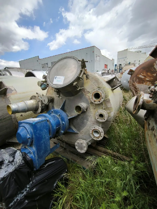 Réacteur en acier inoxydable de 1000 litres avec enveloppe et agitation. - Equipement sur structure en acier. - Système hydraulique pour le levage du couvercle. - Sans documentation. - Volume - Capacité totale : 1000 L - Matériel - Acier inoxydable - Dimensions - Diamètre intérieur :