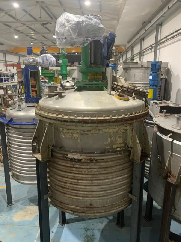 Réacteur en acier inoxydable de 1000 litres avec enveloppe et agitation. - Equipement sur structure en acier. - Système hydraulique pour le levage du couvercle. - Sans documentation. - Volume - Capacité totale : 1000 L - Matériel - Acier inoxydable - Dimensions - Diamètre intérieur :