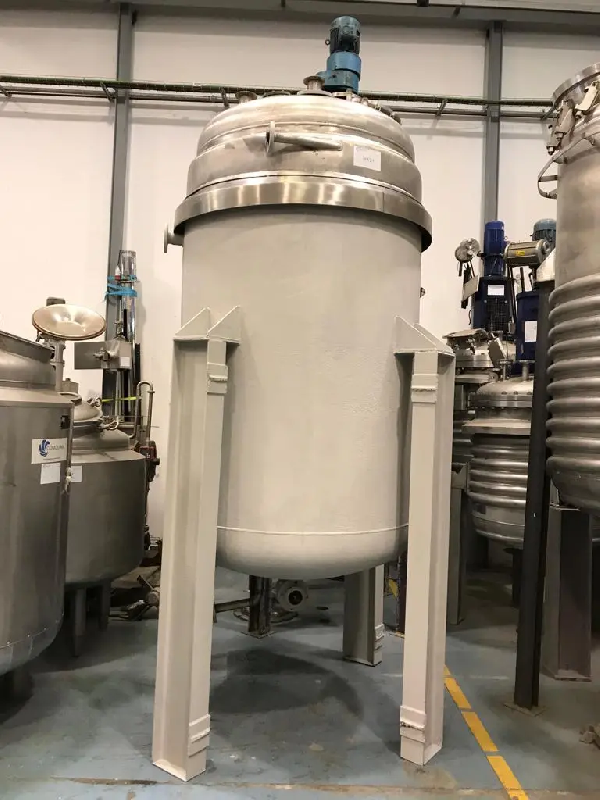Réacteur vertical en acier inoxydable 316 d'une capacité totale de 5 000 litres (4 000 utiles). L'équipement dispose d'un agitateur, d'une demi - barre et de trois disjoncteurs de courant à l'intérieur.Klopper fond supérieur vissé au corps avec trou d'homme, 5 raccords type bride et agitation