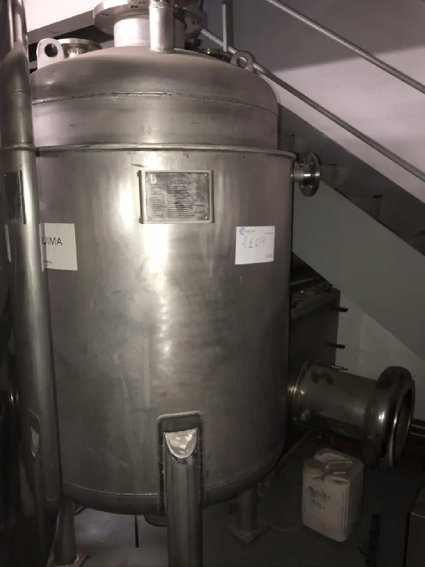 Capacité : 3,5 m3 - Pression : Atmosphérique, - Température de conception : 180 °C - Acier inoxydable : (AISI 316 Ti) - Demi - tuyau pour refroidissement de l'eau et de la vapeur : 6 barg - Année de construction : 1986 - Volume : - Capacité totale : 3870 L - Matériel : - Acier inoxyd