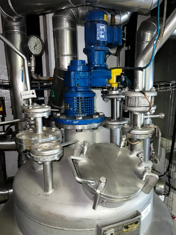 Réacteur en acier inoxydable 316 d'une capacité de 2200 litres. Klopper haut bas avec agitation centrale. Fond inférieur Klopper avec décharge par le bas. Sur des affiches. - Référence : C7693