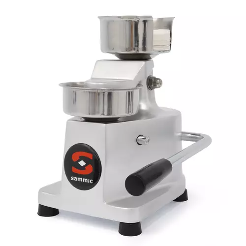 - Production de hamburger rond ou oval selon le moule - L 410 x P 540 x ht 710 mm - de 75 à 350g - jusqu'à 1800/h - Equipée : réservoir de 24 litres, d'un variateur de vitesse, commande au pied - Facile d'utilisation - Moule pour les boulettes de 10 à 40g - jusqu'à 3600/h - Alimentatio