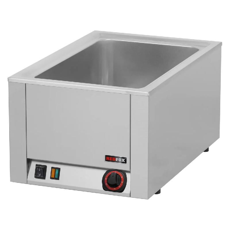 Bain - marie électrique GN 1/1 (150 mm), construction inox, température réglable 30 - 90 °C, chauffage sous la cuve, vidange frontale pour un entretien facile, modèle à une cuve. - Marque : RedFox - Délai de livraison : 1 - 3 jours ouvrés