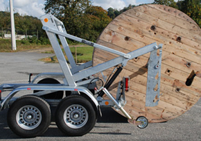 Référence : 81107 - La série KH de remorques porte - touret est destinée au transport et au déroulage de tourets de câble et de PEHD (selon modèle). Ces remorques, reconnues pour leur robustesse et leur fiabilité depuis des décennies, disposent d'un chargement hydraulique du touret. Elles
