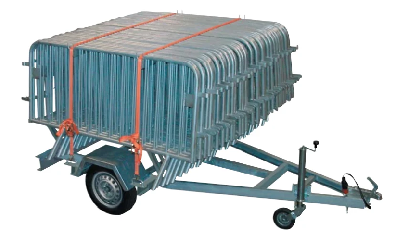 Cette remorque porte - barrière vous permet de transporter 70 barrières sur vos lieux d'interventions. La remorque porte - barrières est conçue pour faciliter le transport et le stockage de vos barrières de sécurité. - Descriptif de la remorque porte - barrière : - PTAC 2000kg 2 essieux av