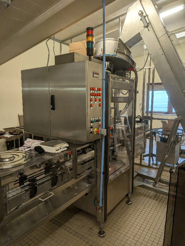 État : Occasion - Ligne de remplissage composée de : - 1 table rotative en entrée - 1 remplisseuse MOM à Augets (année 2001) - 1 Capsuleuse ZALKIN TM 200 - Possibilité d'ajouter une fardeleuse Rochmann en fin de ligne. - Caractéristiques de la remplisseuse MOM type RD 10 : - Vis de sé