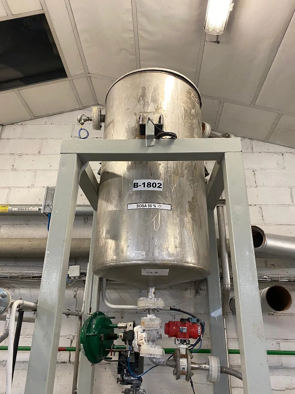 Cuve verticale en acier inoxydable d'une capacité de 600 litres. Environ 3 plateaux avec cellules de pesée.