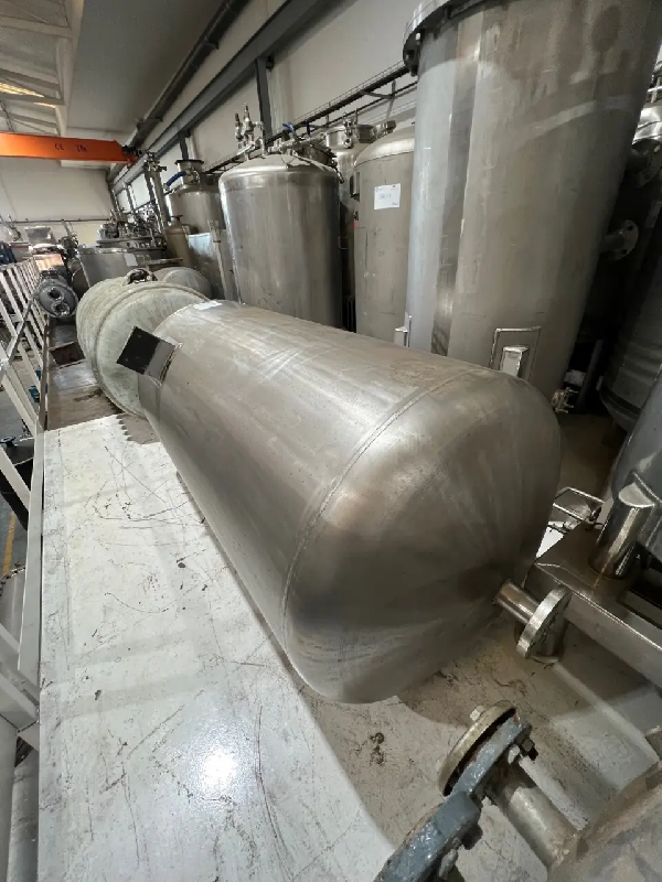 Réservoir d'occasion fabriqué par SEDITESA en acier inoxydable 316, d'une capacité de 1 000 litres. - Pression de conception : 8 bar - Pression d'essai : 12 bar - Température de conception : 185°C - Volume - Capacité totale : 1000 L - Matériel - Acier inoxydable 316/316L - Caractéris
