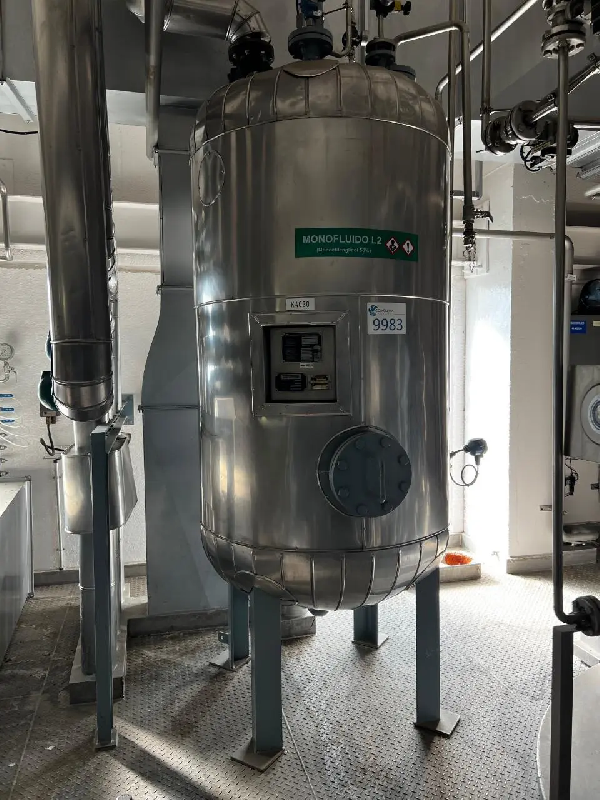 Cuve en acier inoxydable d'une capacité de 1000 litres.Fonds supérieur et inférieur : Klopper.Décharge : par le bas.Avec cartouches.Volume - Capacité totale : 1000 LMatériel - Acier inoxydable 316/316LCaractéristiques techniques - Année de fabrication : 1985Fond supérieur : KlopperFond i