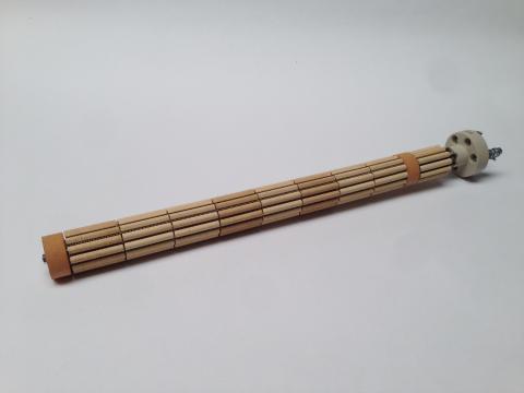 La résistance sera placée sous une petite cuve de 175 cm3 d'eau à porter à ébullition sous environ 15 atmosphères. Dimensions : 80 x 30 x 8 mm environ. Sortie de fils en bout côté 30 mm. Thermocouple incorporé. Prix pour 5 pièces, nécessaires pour essais prototypes, puis par séries de 500 à 50 000 pièces.