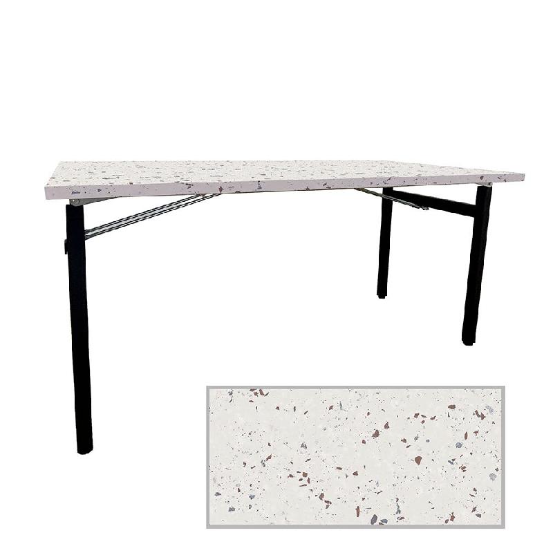 • Table rectangulaire pliable pour 8 à 10 personnes | usage intérieur | plateau 160x80cm - épaisseur 2,9cm - hauteur table 75,5cm - poids 31,3kg• Plateau fabriqué en France | bois aggloméré stratifié | face supérieure : placage stratifié décor terrazzo spectra chip - face inférieur