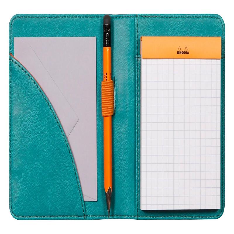 RHODIA 211004C - Livret Porte-Bloc et Porte-Documents N°11 Paon - pour Bloc-Notes ou Carnets de Format A7 (7,4x10,5 cm) - Simili Cuir Italien Premium