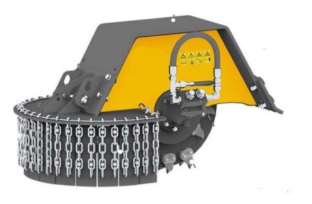 ROGNEUSE DE SOUCHES RANGER RS1 - Équipée de dents au carbure Greenteeth et de moteur hydraulique couple Parker, le balayage s’effectue à l’aide de la commande de bras et de la commande de cavage du godet. - Équipé de retour et drain hydraulique - La casquette d’éjection démonta