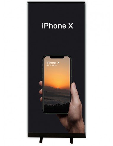 Roll up triangle - 85x200cm - Structure enrouleur aluminium noir avec impression HD -