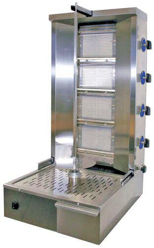MACHINE KEBAB 4 BRULEURS AZCHR GAZ MOTEUR BAS - Dimensions en mm (LxPxH) : l 530 x P 750 x H 1080 mm - Puissance : kW : 13.00 - Volt : 230/1N 50Hz - kcal/h : 1240 - Poids : 0 kg - Volume : 0.00 m³ - 4 brûleurs - ? moteur en bas - ? En acier inox de qualité supérieure - ? Soupape de sé