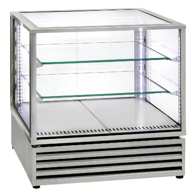 Notre nouvelle gamme pour traiteur - pâtisserie - snacking ! Kubus max pour un maximum de chargement et de présentation de produits sous plusieurs niveaux avec une faible profondeur. Dotée d'un pare - haleine à l'avant, de 2 étagères intermédiaires ainsi que la zone d'exposition, ce modèle