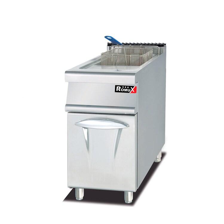 Friteuse À Gaz Naturel Professionnelle en Acier Inoxydable de 18 Litres de Table ROMUX pour hôtellerie, bars, restaurants et services de restauration. - Caractéristiques techniques : - Matériau : Acier inoxydable de haute qualité. - Dimensions : 340x630x460 mm. - Poids : 22 kg. - Modèle :